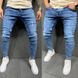 High quality men's worn-out small foot stretch jeans, tight fitting jeans, men's jeans