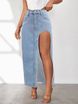 High Slit Half-length Denim Skirt For Women Washed Solid Color Mid-length Skirt