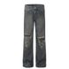 High Street American Style Ripped Patchwork Jeans for Men, Trendy Loose Washed Vintage Wide-Leg Pants, Versatile Straight-Leg Trousers