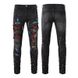 High Street Trendy Men's Jeans Hot Diamond Black Ripped Patch Jeans Stretch Men's Trendy Men's Pants