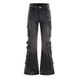 High Street Vibes Trendy Lace-Up Flared Cargo Jeans for Men Punk Vintage Washed Design Niche Slightly Flared Long Pants