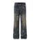 High Street Vintage Splatter Wash Jeans – Men’s Distressed Bell-Bottom Trousers, 90s Grunge Wide-Leg Denim, Mud-Dyed Retro Streetwear Pants