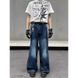High Street Vintage Washed Denim Jeans – Relaxed Straight-Leg With Subtle Flare (Unisex,Mid-Rise Zip Fly, Distressed Detailing)