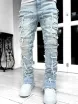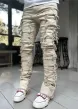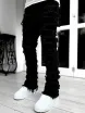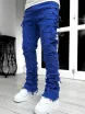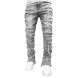 High Street White Mens Stacked Jeans Stretched Patchwork Tassel Damaged Denim Full Length Pants Hippop Trousers For Male