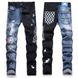 High street youth slim fit elastic yin-yang color letter printed elastic perforated small leg jeans