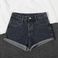 High Waist Rolled Hem Denim Shorts Women Loose Fit Black Gray Wide Leg Summer Shorts