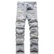 Hip Hop Hole Patch Cat Beard Casual Slim Fit Trendy Men's Jeans