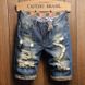 Hole Vintage Men Jeans Shorts Denim Distressed Knee Length Pockets Spliced Cuffs Skinny Washed Punk Style Ripped Mid Waist 2025