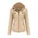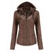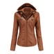 Hooded leather jacket two-piece set can remove oversize leather jacket female PU washed leather