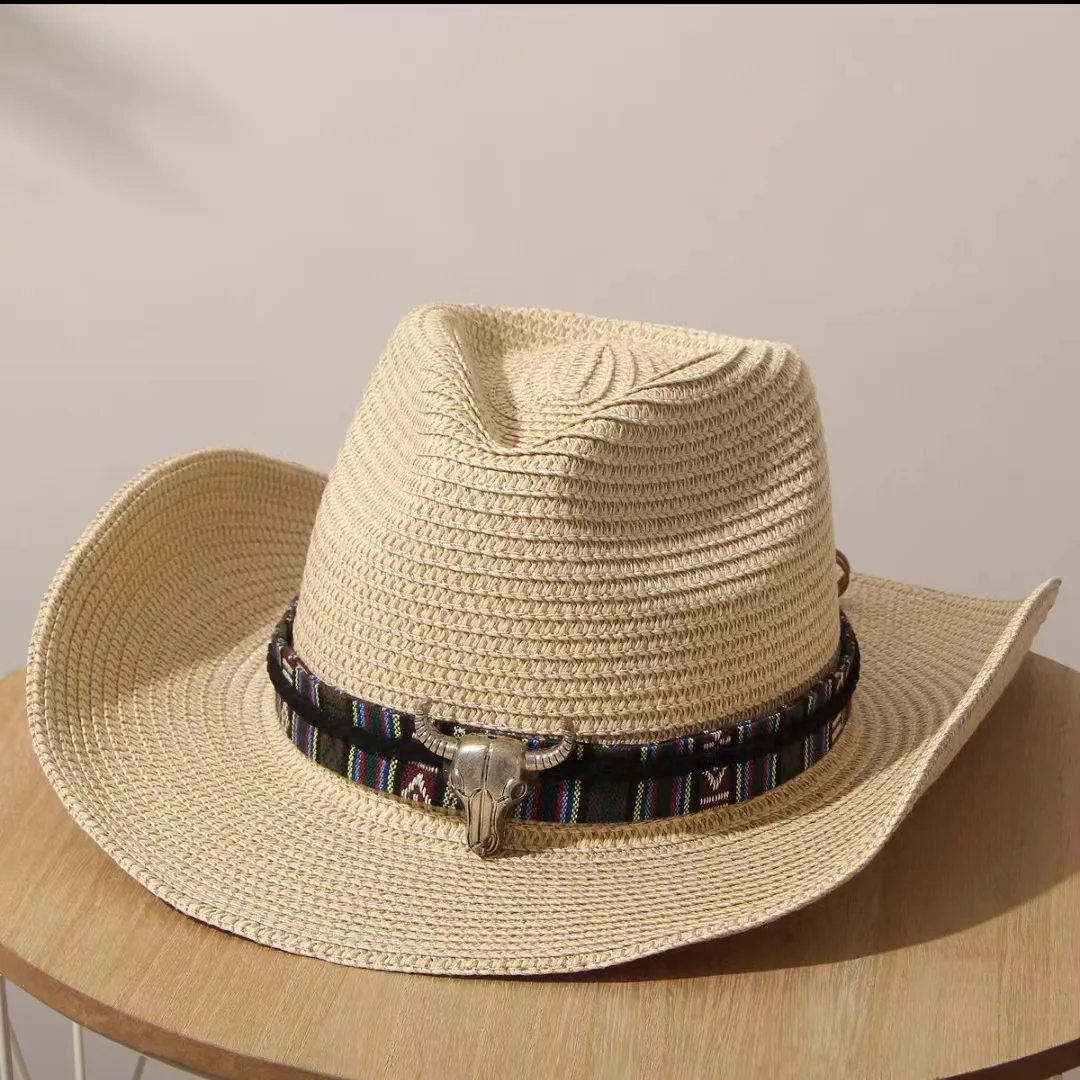 Summer Hat For Women \ man Sun Hat Beach Ladies Fashion Flat Panama Lady Casual Sun Hats For cowboy Westerly wind Straw Hat