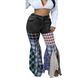 "Houndstooth Stitched Trumpet Denim Pants - Ruffled Hem & Vintage Flare (Light Blue/Dark Blue/Black, S-3XL)"
