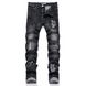 In Stock New AM Foreign Trade Brand Slim Fit Stretch Black Letter Patch Washed Skinny Men's Jeans