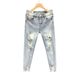 Ins Korean version men's ripped hole slim fit nine inch jeans summer youth fashion light blue rotten pants legs tight fitting small leg pants