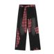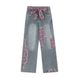 Irregular Patchwork Plaid Jeans for Men, Trendy Brand with Bow Belt Design, Niche Plaid Straight-Leg Pants