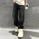 Jacquard Pattern Denim Pants Male Straight Fitting Baggy Bottoms Distressed Wide Jeans For Men
