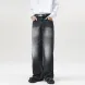 Jeans Men Wide Leg Long Pants Denim Pants Loose Casual Regular Straight Pants ONE Line Splice Button Bag Autumn Winter 2025