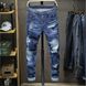 Jeans Pendant Refreshing Light Blue Destructive Paint Wild Exposed Yarn Slim Fitting And Trendy Man