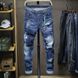 Jeans Pendant Refreshing Light Blue Destructive Paint Wild Exposed Yarn Slim Fitting And Trendy Man