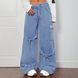 Jeans Women Denim Straight Wide Leg Pants 2025 Streetwear Button Pockets Mom Mid Waist Lace Up Bow Washed Distressed Trousers