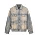 Jiayiku Trendy Brand 2025 Spring New Style Waste Earth Style American Hot Diamond Heavy Industry Washed Water Damaged Cowboy Jacket Coat