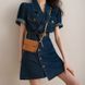 Jinqian Denim Dress Design Feeling Slim Waist, Commuting Short Sleeve, Small Figure Skirt Fashion