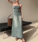 JWUNIQUE blue strapless dress for women's summer 2024 new slim fit denim A-line skirt long skirt