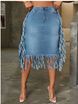 K Fashionable Trend Sexy Denim Fringed Midi Skirt