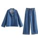 K Women's Fashion Denim Jacket; Elastic Waist Long Pants; Casual Denim Suit.