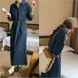 Korean Version Double Pocket Lapel Breasted Denim For Women, Drawstring Waist Tie, Water Washed Long A-Line Dress