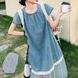 Lace patchwork denim dress for women, medium to long, 2025 summer new style, French loose design, mesh skirt