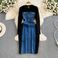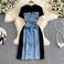 ladylike Temperament Short-sleeved Round Neck Waist Slimming Denim Splicing A-line Dress Casual T-shirt Skirt