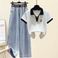 Lapel Polo Shirt Short-sleeved T-shirt New Loose High Waist Korean Wide-leg Pants Denim Suit
