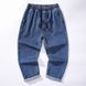 Large Size Jeans Men's 9 Points Summer Loose Fat Straight Pants Simple Elastic Waist Nine Points Denim Dad Pants Men