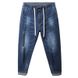 Large Size Men's Clothing Summer Thin Ripped Jeans Men's Ribbed Splicing Elastic Waist Nine-point Jeans Men's American Pants