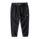 Large Size Men's Spring And Summer New American Nine-point Pants Men's Elastic Waist Multi-bag Overalls Men's Solid Color Tied-foot Jeans