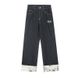 Leopard Print Patchwork Jeans Unisex American Style Straight Loose Casual Draped Wide Leg Trendy Brand Couple Floor-Length Pants
