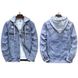 Material function:Breathable, wear-resistant, windproof, stain-resistant, moisture-wicking, tear-resistant, others,Product Source Category:In Stock,Brand:Riding a Winning Horse,Product Category:Jacket,Item Number:DS9936#,Style:European and American,Bargain Category:Fashionable Urban 24-35 Years Old,Collar Style:Turn-down Collar,Design:Form-fitting,Front placket:Single-breasted,Is it hooded or not?:Hooded,Thickness:Average,Pattern:26246336789,Error margin:1-3cm.,Suitable for the season:Spring and Autumn Season,Is it in stock?:No,Suitable for everyone:Youth,Year/Season of Release:Spring 2025,Fabric Name:Denim,Main fabric composition:Cotton,Content of the main fabric components:90,Applicable Scenarios:Casual,Design details:Pocket Decoration,Design of Clothing Hem:Straight Hem,Craftsmanship:Salted Fried Food with Holes,Length of clothing:Regular,Clothing Pocket Styles:Side Seam Pocket,Styling Tips:Outerwear,Sleeve Length:Long Sleeve,Color:blue,Size:M,L,XL,XXL,XXXL,XXXXL,Sleeve Style:Shirt Sleeves,Main downstream platforms:, , , , Independent Site,Main sales regions:Europe, Southeast Asia, North America, Northeast Asia, Middle East,We have authorized private labels available:yes,Is it exclusively for cross-border export supply?:yes,Original Design Source:yes,Is there a quality inspection report?:No,Quality Inspection Report Number:None,Suitable age group:adult,Applicable Gender:Male