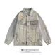 Loom Spring Autumn New European And American Hip-Hop Vintage Embroidered Distressed Denim Jacket For Men, Trendy Loose Casual
