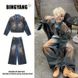 Loom Yellow Mud Color Denim For Men High-end European American Street Style Men's Spring And Autumn Vintage Distressed Padded
