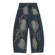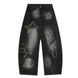 Loose Fit Denim Scimitar Pants Men's High Street Trend Embroidered Irregular Deconstructed Patchwork Frayed Wide-Leg