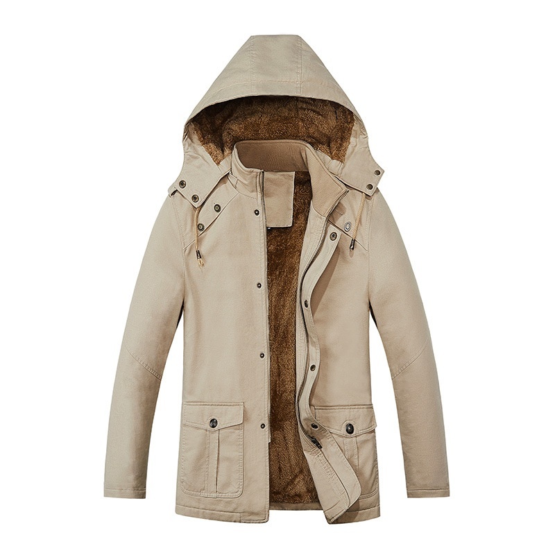 Men's Jacket Autumn Winter 2024 New Foreign Trade Men's Clothing Jacket Fleece Lined Thick Loose Hooded Mid-Length Trench Coat