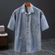 Lyocell Ice Silk Short Sleeve Shirt Men's Summer New Thin Material Lapel American Washed Denim Shirt Men's Top