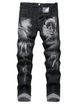 Men’s 3D Printed Stretch Jeans – Slim Fit Denim Pants With Artistic Patterns, Mid-Rise Straight Leg (28-42, Streetwear Ready)
