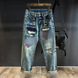 Men’s Distressed Embroidered Straight-Leg Jeans – Relaxed Fit Patchwork Denim Pants With Vintage Wash