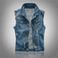 Men’s Slim-Fit Denim Vest – Distressed Washed Workwear Jacket With Multiple Pockets (98% Cotton, S-6XL, Blue)