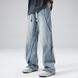 Men’s Vintage Washed Denim Pants – Relaxed Wide-Leg Dad Jeans With Distressed Details, Comfortable Cotton Blend For Casual & Streetwear