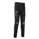 Men Snake Embroidery Jeans Skinny Tapered Stretch Denim Pants Streetwear Holes Ripped Leather Patch Patchwork Trousers