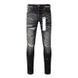 Men's American High Street Fashion Distressed Washed Black Gray Damaged Holes Stretch Skinny Button Fly Ripped Jeans
