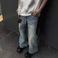 Men's Clothing 25 New American Style Personalized Scratched Washed Blue Loose Wide-leg Pants