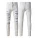 Men's Clothing American Fashion Casual High Street White Jeans Men's Slim Elastic Ripped White Men's Pants 592